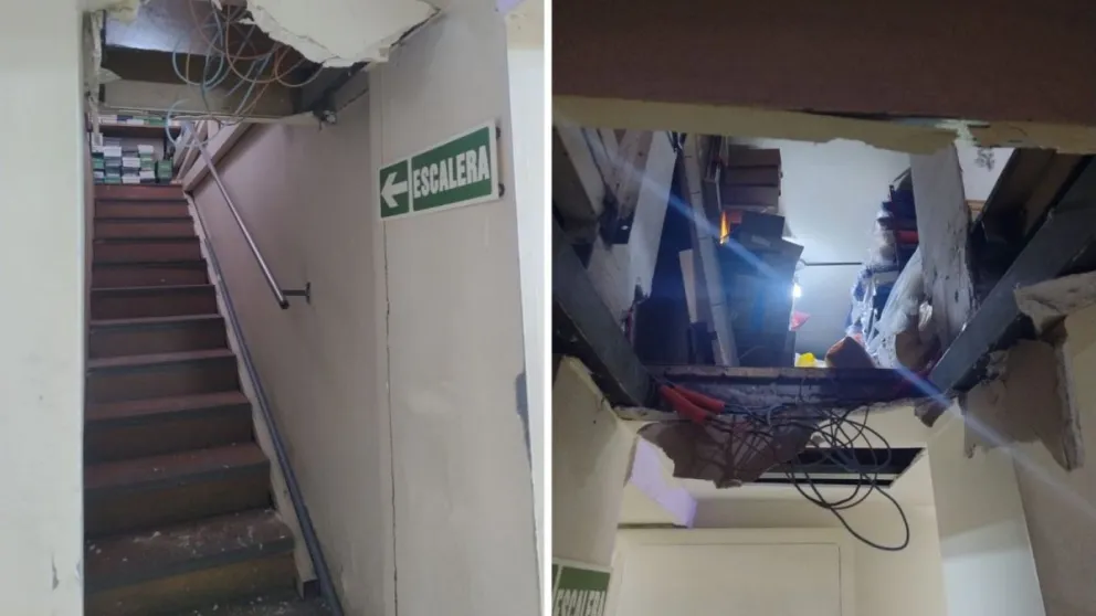 CAPITAL Un trabajador de una reconocida óptica padeció lesiones al cederle el suelo del entrepiso donde estaba y caer dos metros