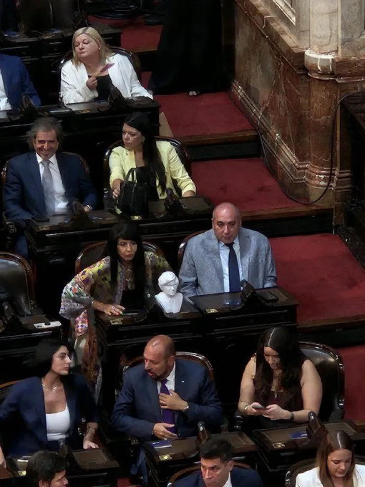 FANATISMO Una diputada libertaria, ubicada al lado del sanjuanino Peluc, llevo un busto de Milei a la Asamblea