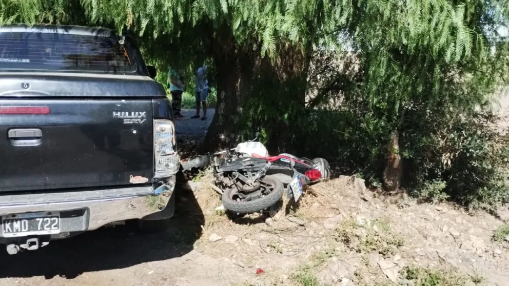 RIVADAVIA Le quedó la moto acelerada e impactó contra una camioneta estacionada: se lesionó la rodilla