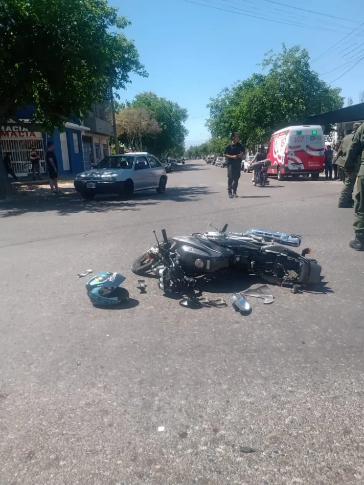 Fuerte siniestro Un motociclista terminó en la puerta de una casa tras chocar contra un auto en Chimbas