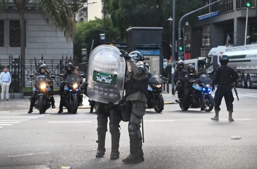 COMPLICACIÓN Incidentes en la marcha contra la reforma laboral: la policía y la gendarmería avanzaron sobre los manifestantes para despejar la plaza
