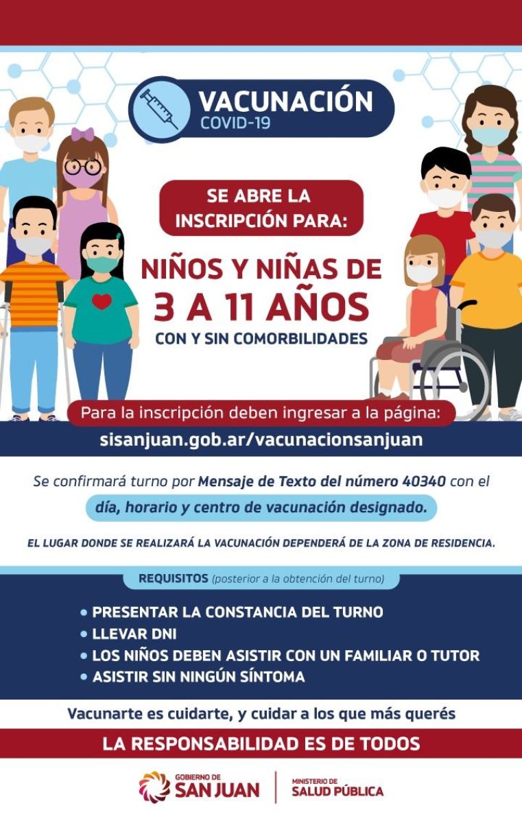 La inscripción se realizará de la misma manera que la de los anteriores grupos, a través de la página sisanjuan.gob.ar/vacunacionsanjuan