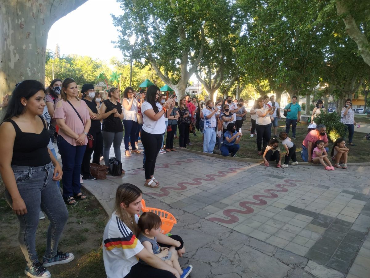 El lugar elegido fue la Plaza Laprida. Allí, un grupo de 14 alumnos hizo una adaptación en cinco escenas de dicha obra. La docente Daniela Fabaro comentó a 0264 Noticias: “Esto es un parcial. Estamos evaluando a los alumnos de otra manera. La idea surgió en la asignatura Literatura donde estamos trabajando el género dramático y se nos ocurrió hacer algo al aire libre. Estamos tratando de evaluar la selección de obra y la canalización literaria. Hemos articulado esta cátedra con la cátedra profesionalizante también".