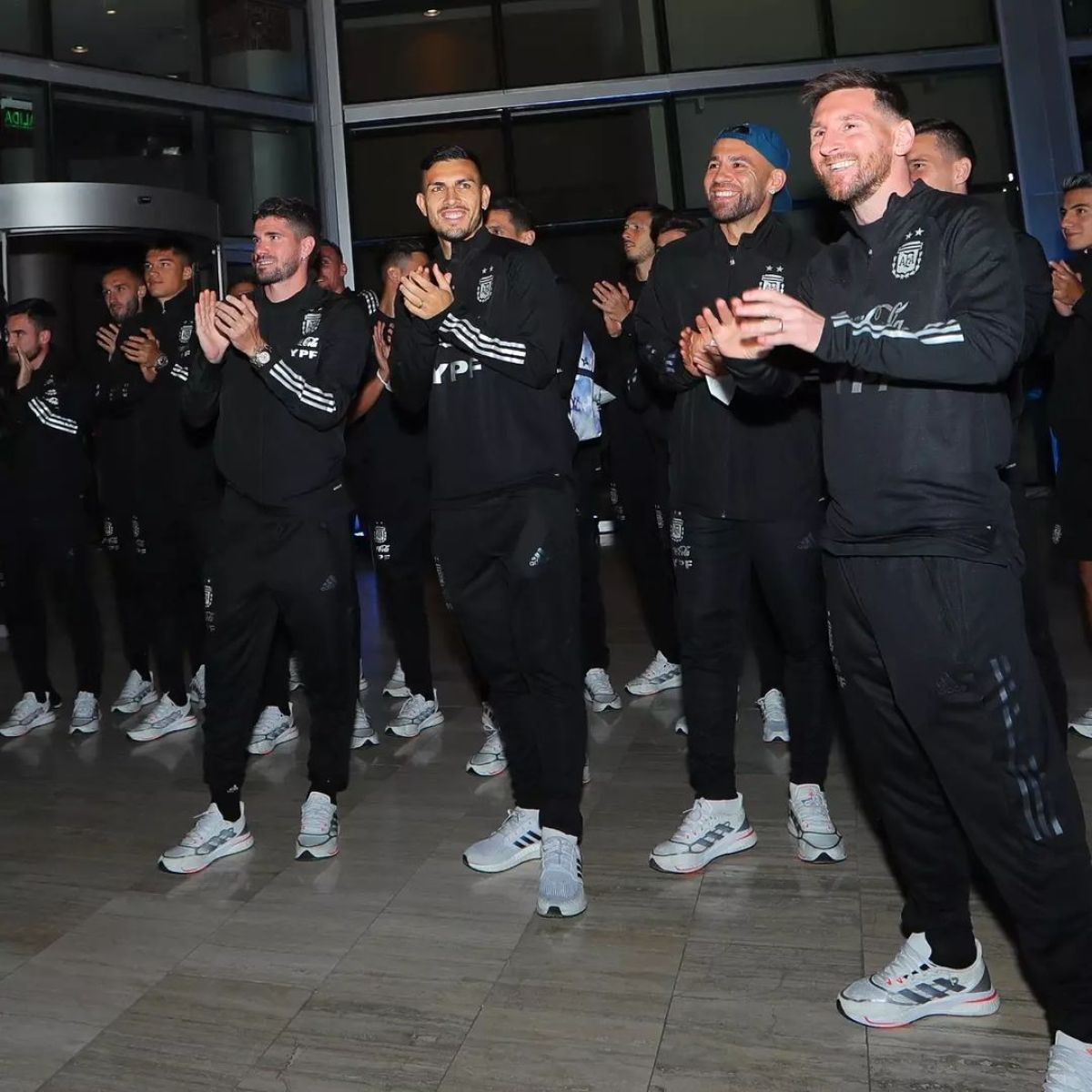 Lionel Messi y compañía salió a la puerta de ingreso del hotel a saludar a los fanáticos.