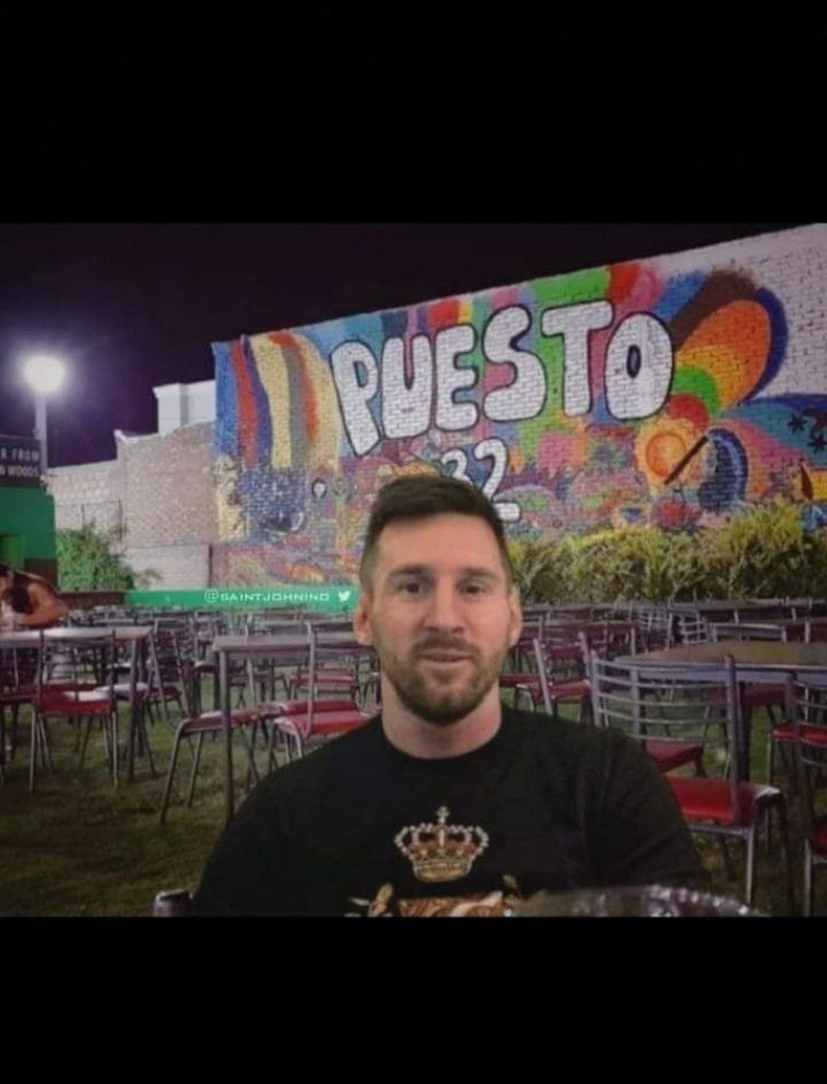 La imagen de parte de la familia Messi en el interior de un canal, es otra postal que el ingenio sanjuanino no pudo dejar pasar. Pero además de lugares a Messi lo hicieron "comer semitas" y engordar y conocer a un cuartetero icónico de la provincia como el Yeyo.