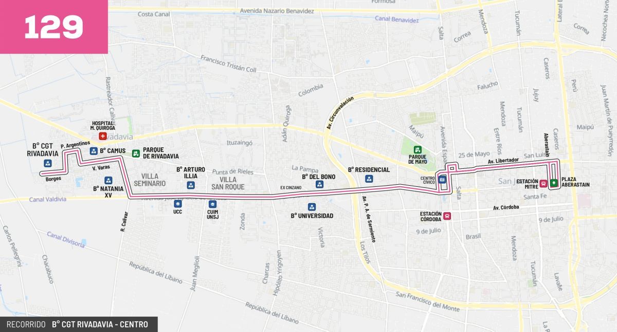 La línea 129, explicó Carlos Romero, director de Tránsito y Planeamiento de Movilidad: “Apunta a mejorar los tiempos de llegada al área céntrica de vecinos del B° CGT, Camus, Natania XV, y el conglomerado urgano del área sur del Hospital Marcial Quiroga”.