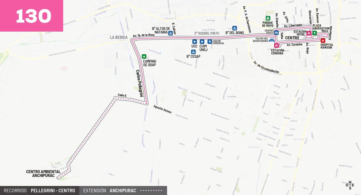 En este sentido, nace la línea 130 que apunta a dar cobertura a los vecinos de calle Pelegrini en La Bebida, pero esta vez circulando en forma directa por Av. Ignacio de la Roza con llegada al centro de la ciudad de San Juan.