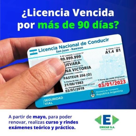 EMICAR, la empresa que emite las licencias de conducir en San Juan, anunció nuevas medidas a la hora de renovar el carnet. Las mismas afectan directamente a los conductores que tienen la licencia vencida hace más de 90 días y comenzarán a regir a partir de mayo.