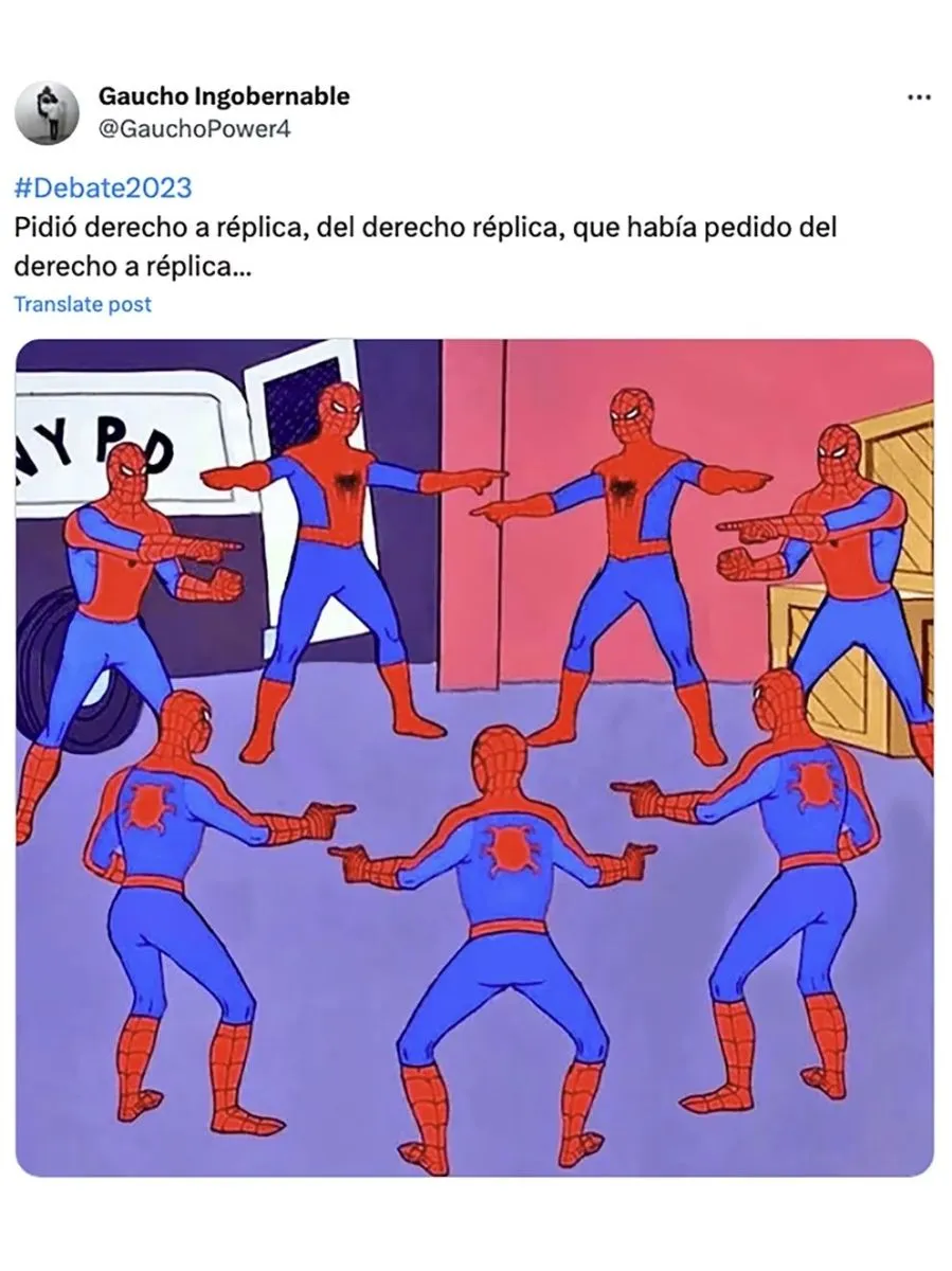 En marco del segundo debate presidencial, los candidatos Sergio Massa, Patricia Bullrich, Javier Milei, Juan Schiaretti y Myriam Bregman se volvieron a enfrentar. Y, como suele pasar en estos casos, aparecieron los memes y explotaron las reacciones a través de las redes sociales