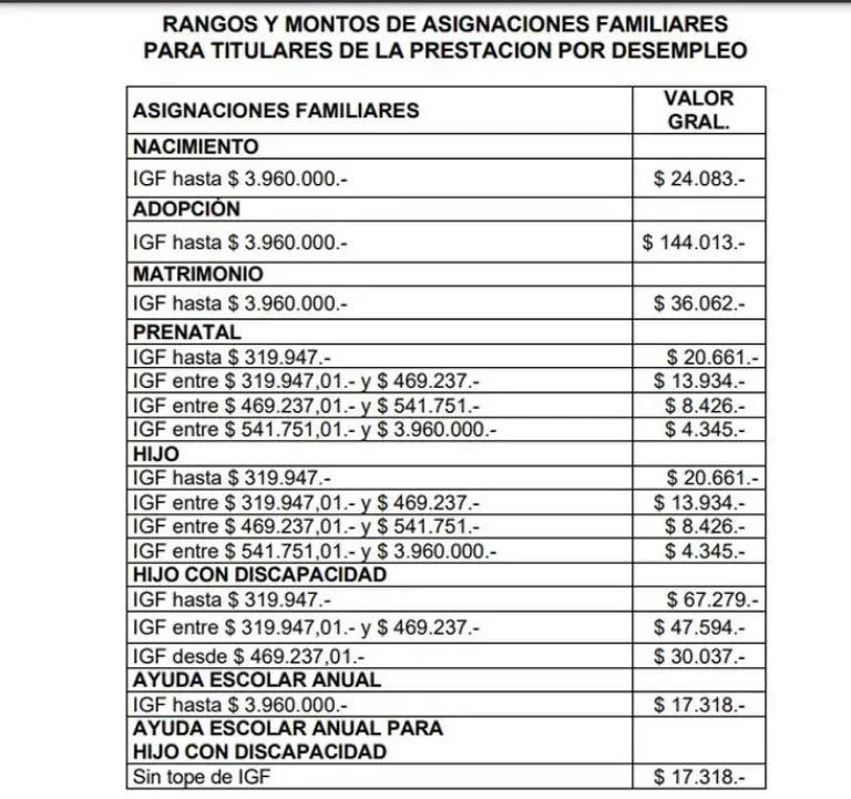 Asignaciones familiares: cuánto cobrarán titulares de prestación de desempleo