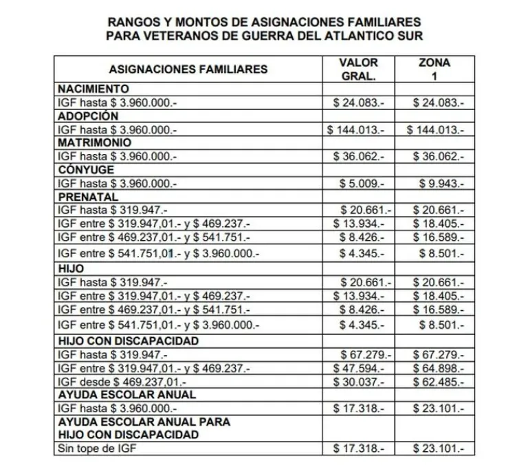 Asignaciones familiares: cuánto cobrarán los veteranos de guerra