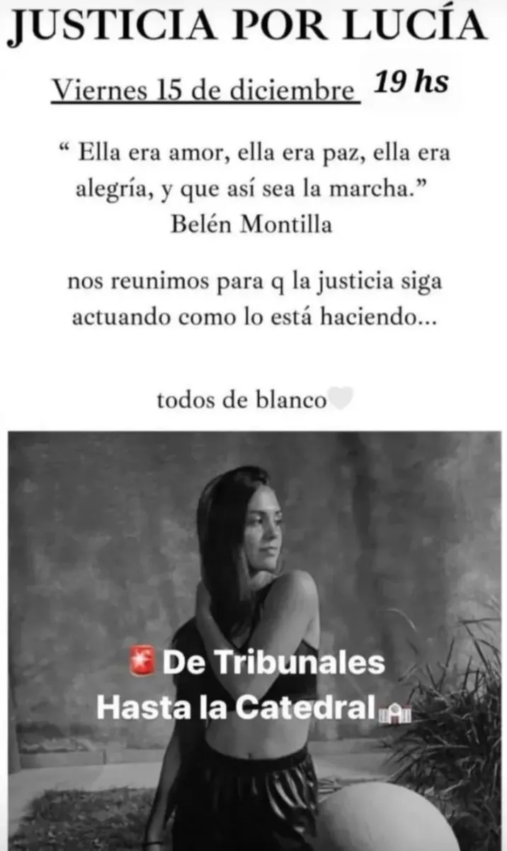 A dos meses de la muerte de Lucía Rubiño, su familia organizará una nueva marcha con pedido de justicia. La convocatoria está programada para la tarde de este viernes. Pidieron que los asistentes vayan vestidos de blanco.