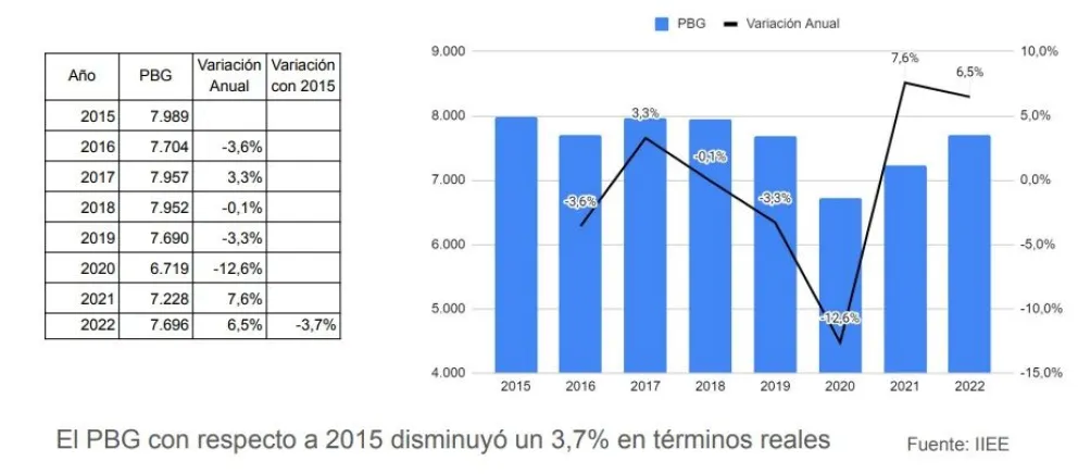 • El nivel real de actividad de la Provincia, en el periodo 2015-2022 cae un 3,7%. Esta contracción tiene efectos negativos en empleo, los ingresos y el bienestar general de los Sanjuaninos.
