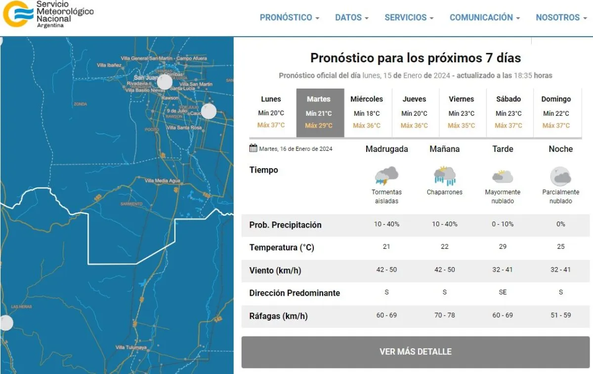 El Servicio Meteorológico Nacional informó que las ráfagas llegarían durante la madrugada del martes y permanecerán hasta la noche.