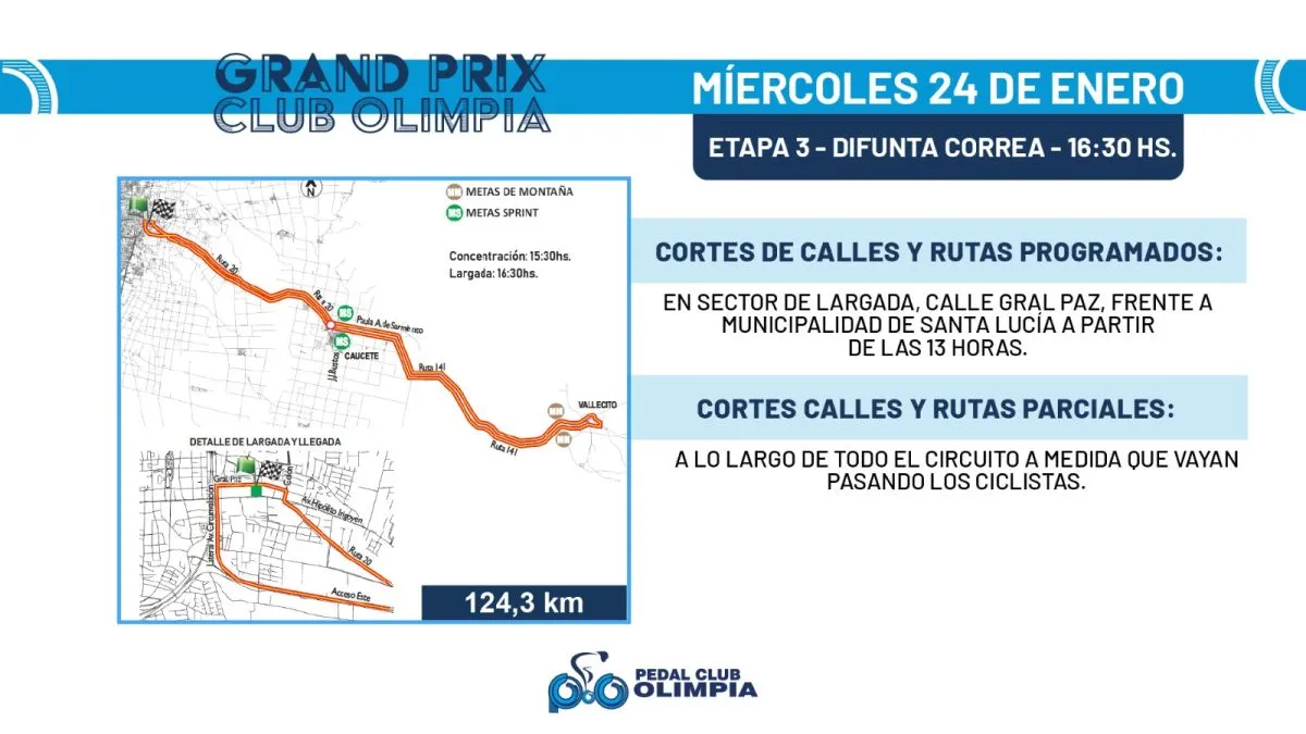 Este miércoles será el turno de la tecera etapa, en el circuito Santa Lucía-Difunta Correa, que tendrá un recorrido aproximado de 124 kilómetros.