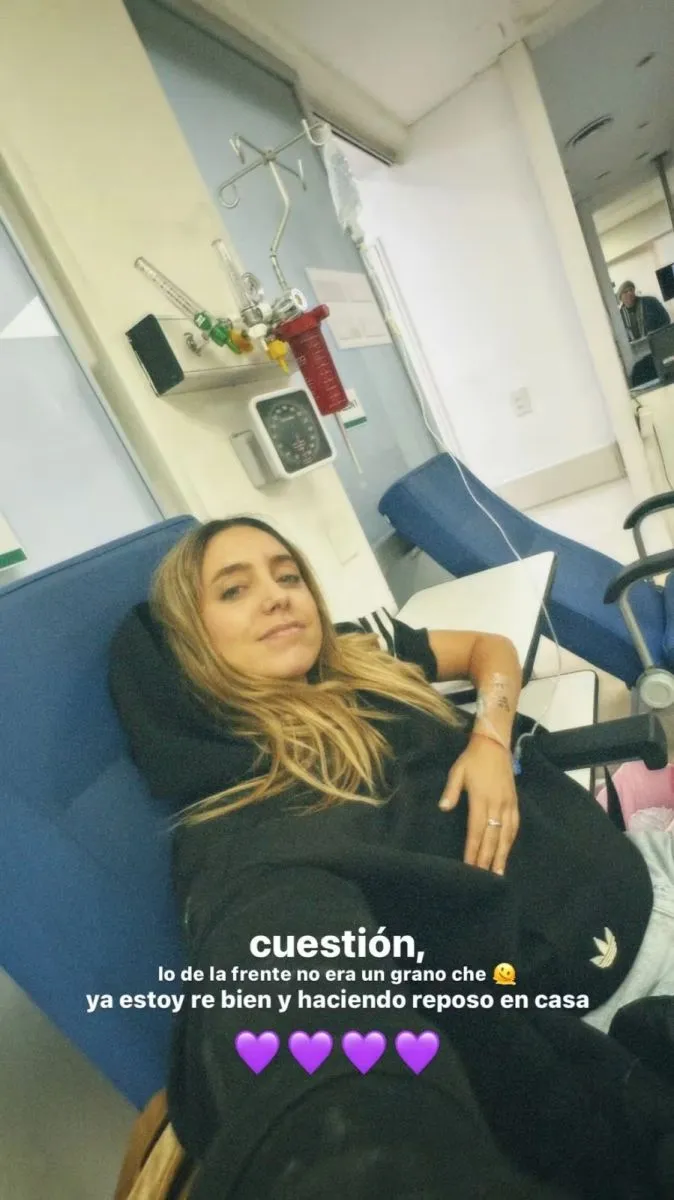 Luego, para transmitir calma a todas las personas que veían sus stories, Sofía subió otra imagen en la que dio más detalles de su estado de salud: “Cuestión que lo de la frente no era un grano, che. Ya estoy re bien y haciendo reposo en casa”. Las palabras de la comunicadora estaban acompañadas por una foto suya donde se la veía recostada en la sala de un médico, mientras era atendida.