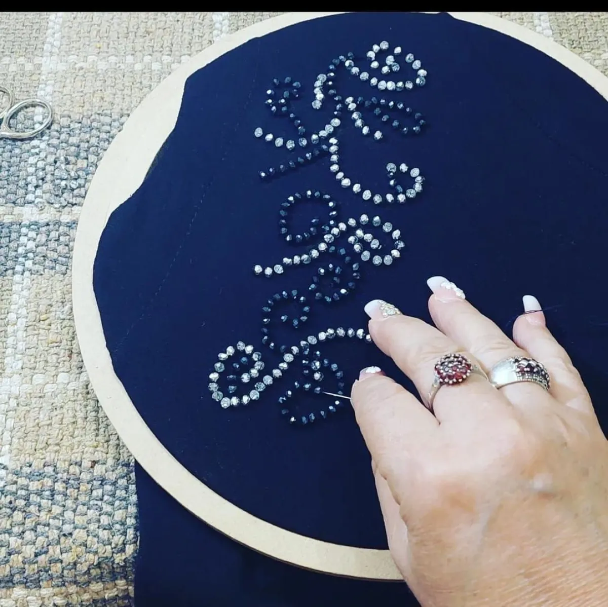 El bordado se convirtió en algo más que una distracción para ella, luego de hacer su primer bordado, nos contó que "hice online un pedido de tres camperas, también las bordé y así comenzó todo. Hoy te puedo decir que en estos años he producido, me siento a bordar, me encanta diseñar, lo hago como si fuese para mí. Siempre pensando en que las chicas, las mujeres, tienen que pensar que cada vez que salen con una prenda mía tienen que brillar y son exclusivas".