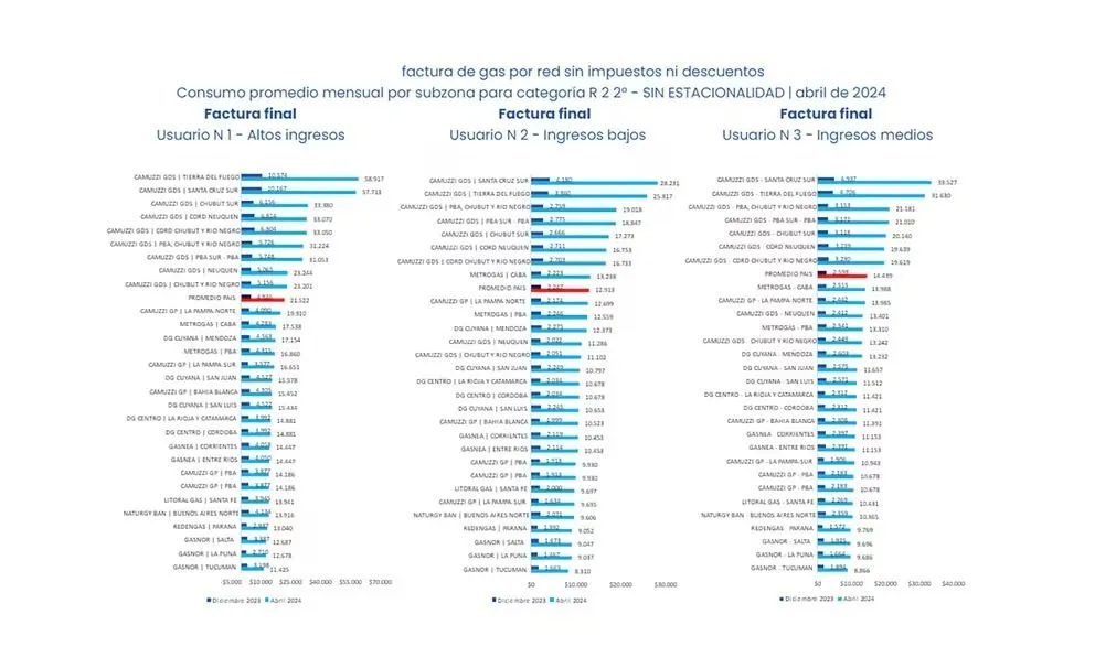 El servicio de gas natural por redes se encuentra regulado a nivel nacional, por lo que no hay una dispersión para interpretar las facturas. Sin embargo, si hay diferencia entre los subsidios y la disparidad de consumo entre regiones: