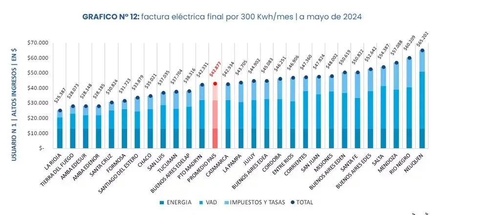 “La factura eléctrica promedio país es de $42.877 para un hogar de altos ingresos (N1), $17.453 para un hogar de ingresos bajos (N2) y $18.048 para un hogar de ingresos medios (N3)”, detalló el informe.