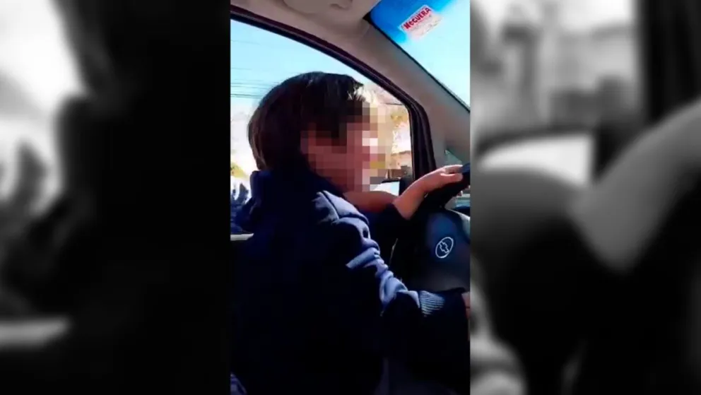 En el video de un minuto que se difundió, se observa al niño sentado frente al volante, con un adulto en sus espaldas, que es quien acelera y frena. Además, se escucha la voz de otros chicos en el vehículo.