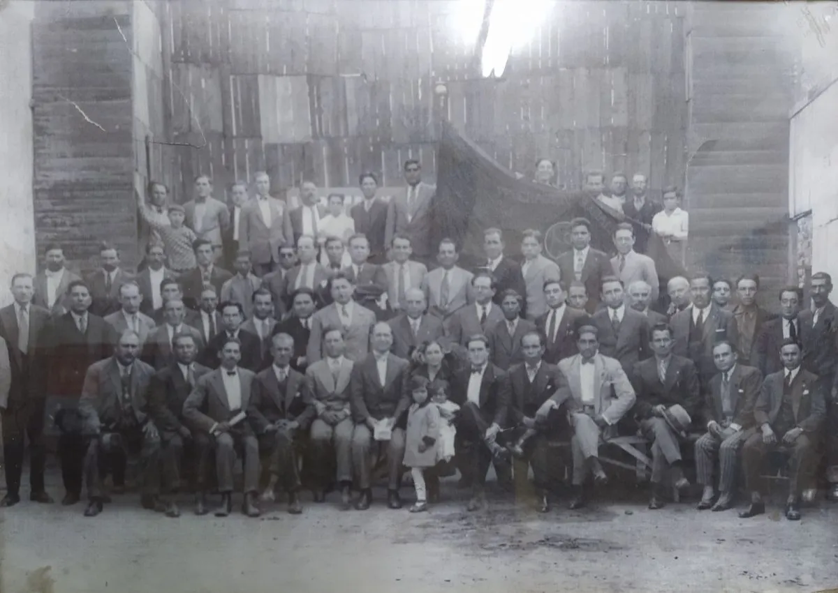 La foto hace referencia a un congreso partidario provincial realizado en la Casa del Pueblo. En el centro Arturo Storni, Arturo Bottino e Indalecio Carmona Rios. Fecha posible entre 1927-1928. Foto: Partido Socialista de San Juan.