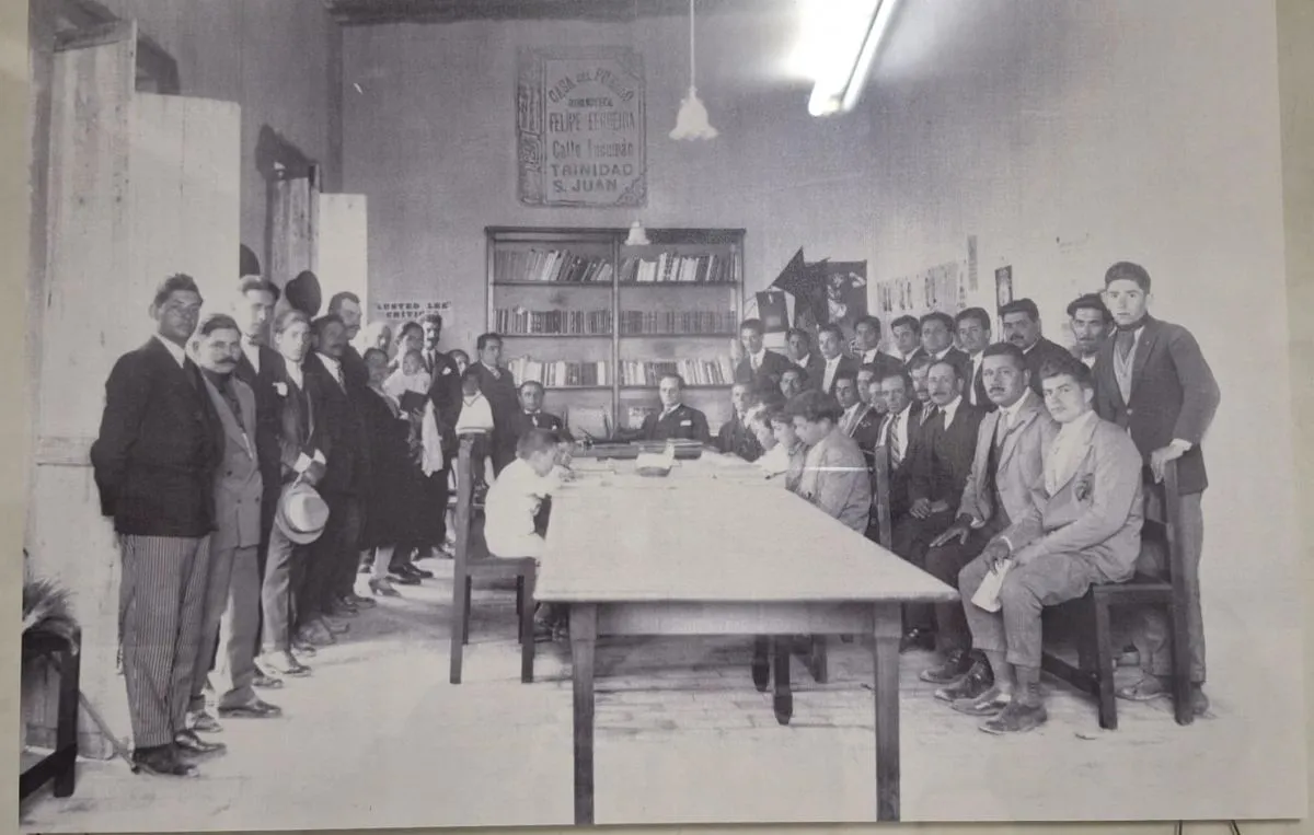 Militantes en la Biblioteca Felipe Ferreira. Pertenecía a la Casa del Pueblo en Trinidad. Estuvo vigente hasta la última dictadura militar. Foto: Partido Socialista de San Juan.