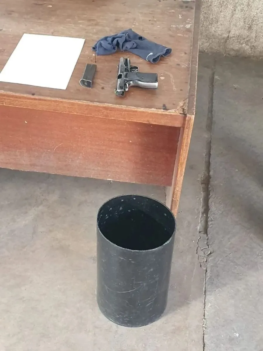 El arma es una pistola calibre 9 mm, marca FM Hi Power, modelo "Detective", N.º 350681, contenía un cargador y 11 cartuchos del mismo calibre.