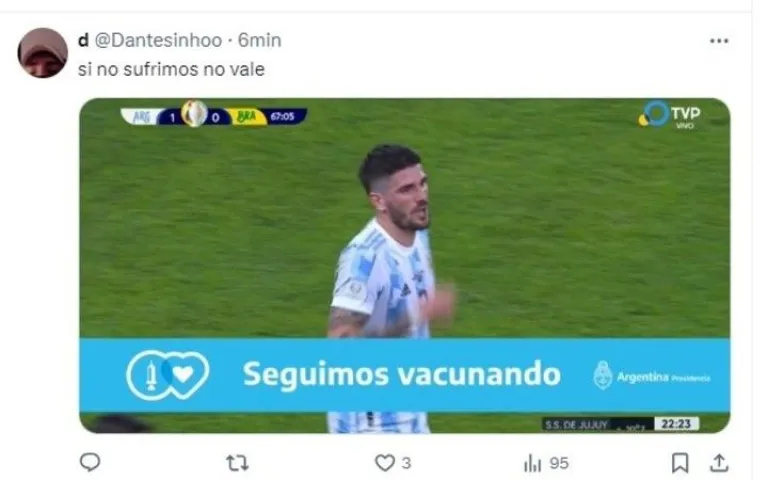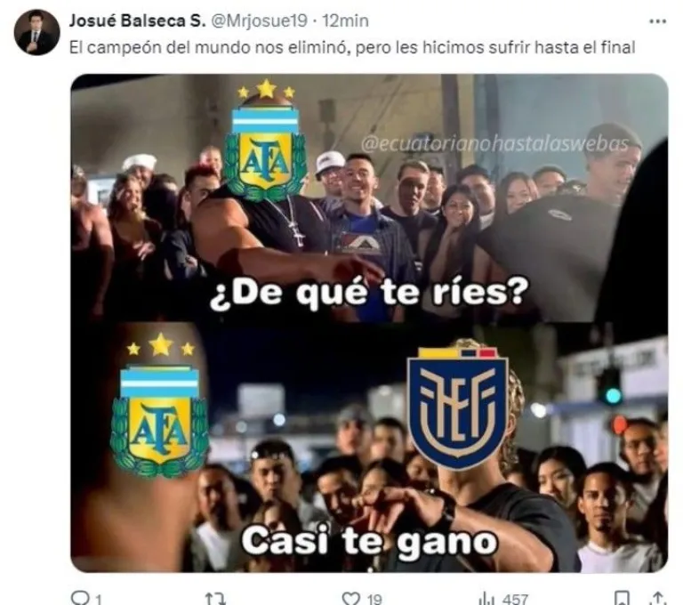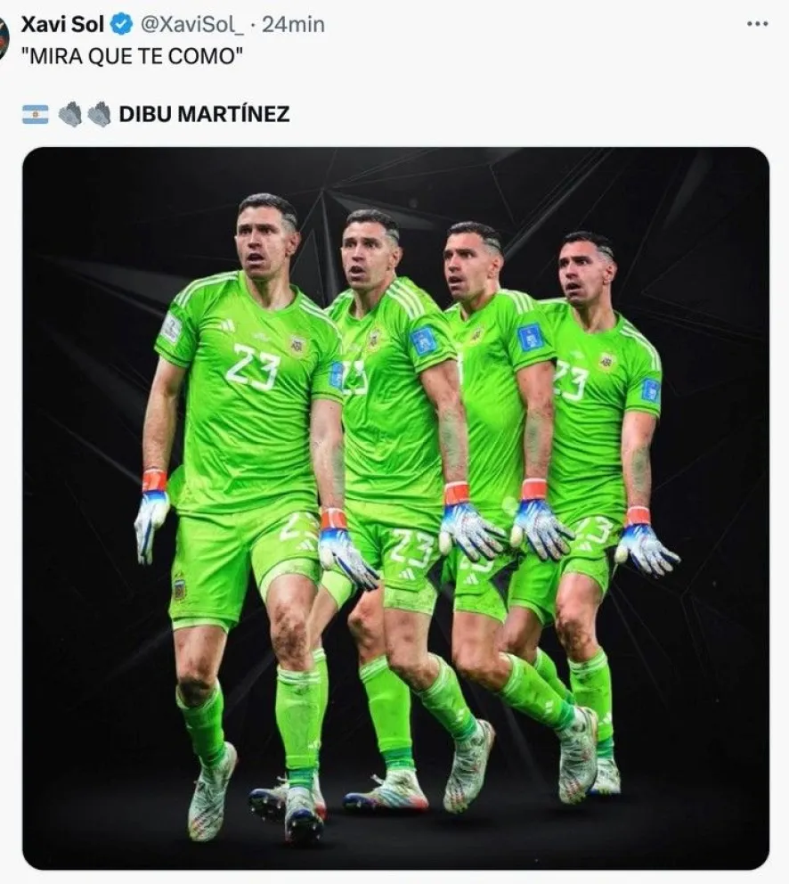 Argentina ya está en la semifinal de la Copa América. Luego del sufrido 1-1 en los 90, le ganó por penales a Ecuador con un enorme Dibu Martínez. El arquero fue el héroe de la Selección en Houston y el más elogiado por los hinchas en todos los rincones del mundo. Minutos después de sus atajadas y sus bailecitos, Dibu la rompió en las redes. Es que estallaron los memes en su honor. Mirá algunos de los más divertidos.