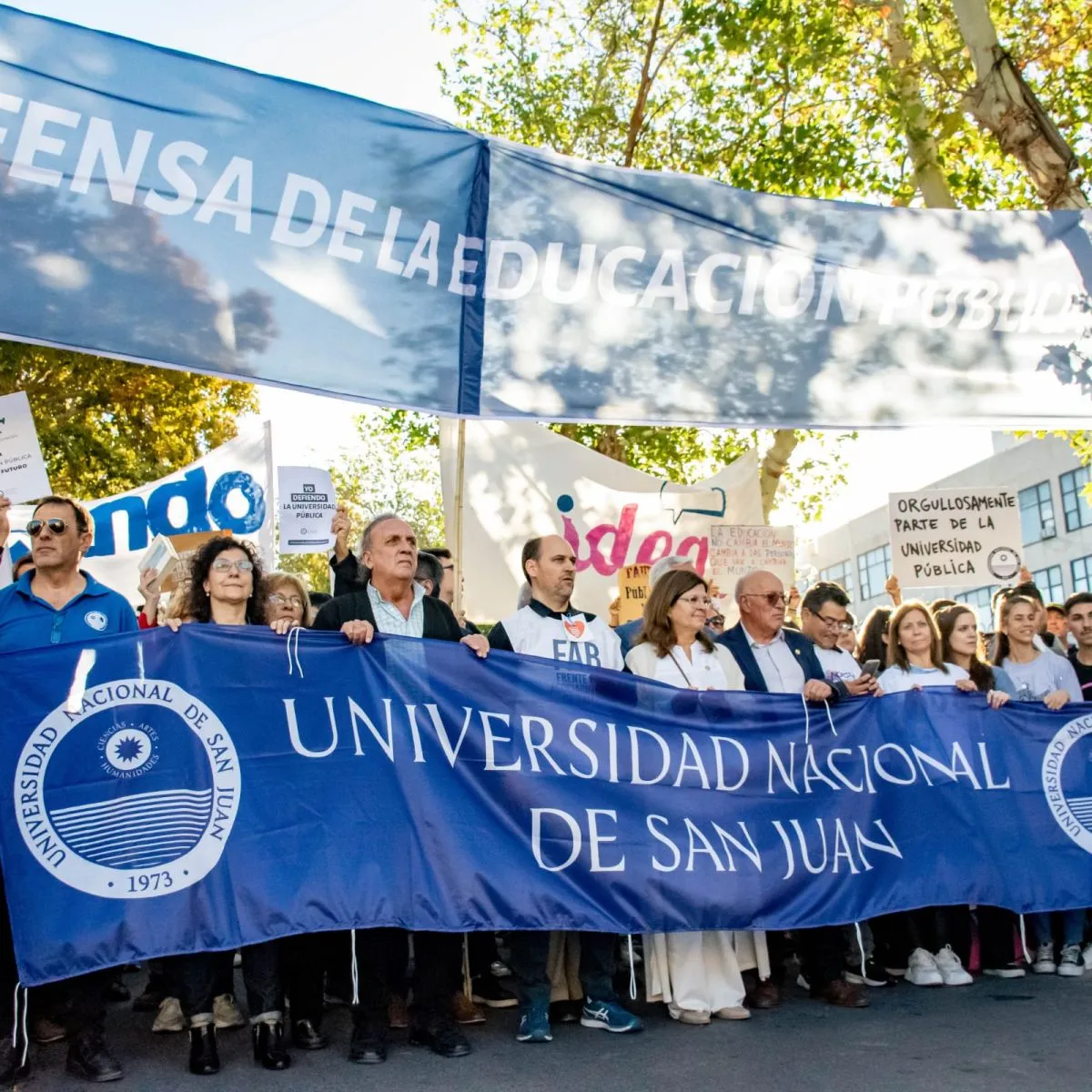 Disputa. El rector Berenguer y el decano Velasco, entre tantos otros, participaron de la marcha universitaria contra el ajuste nacional a las universidades. Es un punto de crítica a Cocinero, quien señaló que fue una movilización "política partidaria".