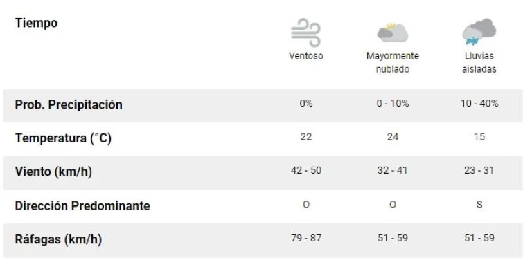 Según el pronóstico del SMN, para la mañana de este viernes se esperan ráfagas de hasta 87 kilómetros por hora y una visibilidad de 15 kilómetros.