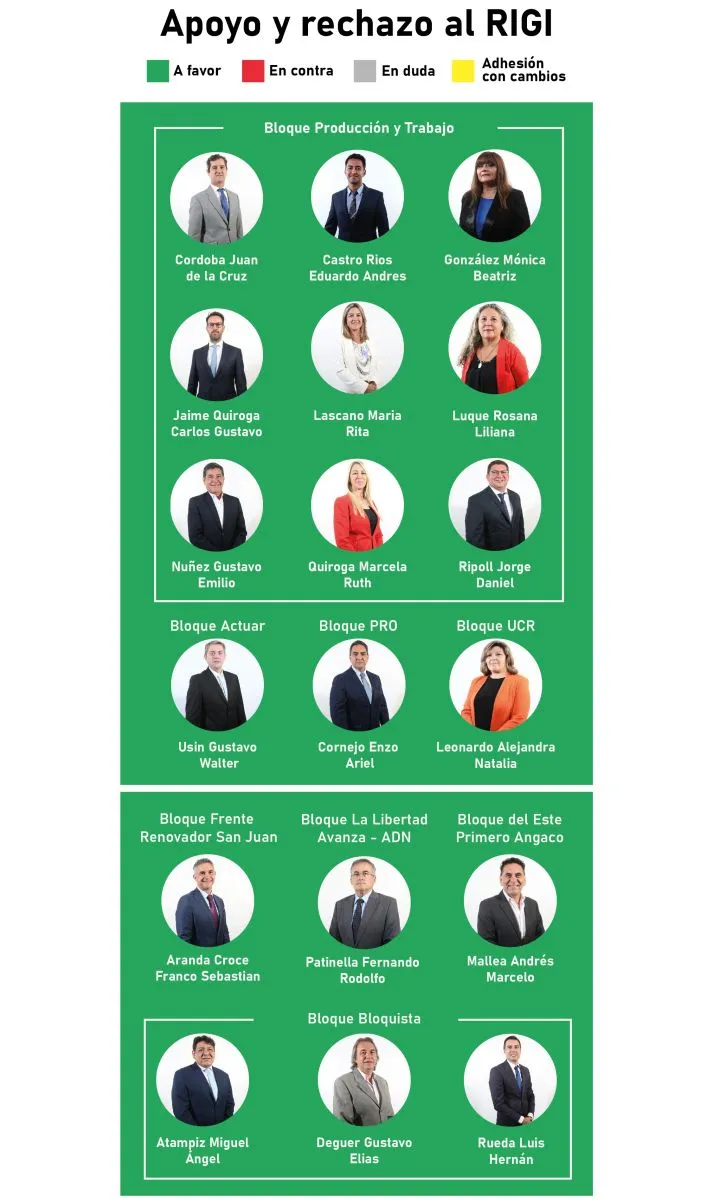 Bajo ese marco, no hay una acción en conjunto dentro del peronismo y se presentan casos difíciles de explicar. Por ejemplo, está el diputado y exintendente de Jáchal, Miguel Vega, que en sus tierras cuenta con el proyecto de oro Gualcamayo, votará en contra del RIGI, mientras que su par de Calingasta, el exjefe comunal, Jorge Castañeda, se mostrará a favor junto con el oficialismo, ya que, en su distrito se encuentran proyectos de cobre clave como Pachón, Los Azules y Altar. En el caso de Valle Fértil, Omar Ortíz, perfilaba por la adhesión, pero está en duda, indicaron las fuentes, ya que no se descarta que apoye una tercera propuesta legislativa planteada por el ullunero, Leopoldo Soler, quien propuso adherir, pero con cambios.
