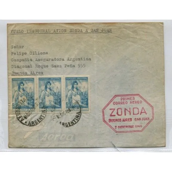 Sin embargo, anteriormente ya se habían habilitado vuelos con los primeros correos aéreos entre San Juan y Buenos Aires de la mano de la compañía Z.O.N.D.A,  con un servicio que hacía un recorrido similar al de pasajeros, es decir, unía a Mendoza con Buenos Aires, pero realizaba una detención en el departamento Pocito. El primer viaje para enviar correspondencia sucedió el 2 de diciembre de 1946  y el diario Tribuna tituló la noticia publicada ese mismo día de la siguiente manera:  “El Primer correo aéreo argentino entre Buenos Aires y San Juan”. Para la ocasión se llevó a cabo un estampado especial para celebrar el arribo de la prestación. “Con de la inauguración de este servicio, se ha dispuesto que la correspondencia sea sellada en su cubierta con un sello especial recordatorio de dicho acontecimiento, el que lleva la inscripción siguiente: Primer Correo Argentino San Juan- Buenos Aires-Zonda-3 de diciembre”, expresa el artículo.
