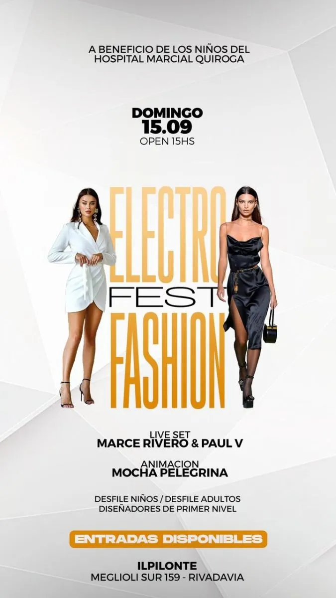 Moda, música y solidaridad, serán los protagonistas del "Electro Fashion Day", un evento que promete ser mucho más que un desfile de moda. Este evento solidario tiene como fin, poder recaudar juguetes y ropa para los chicos que se encuentran internados en el Hospital Marcial Quiroga.