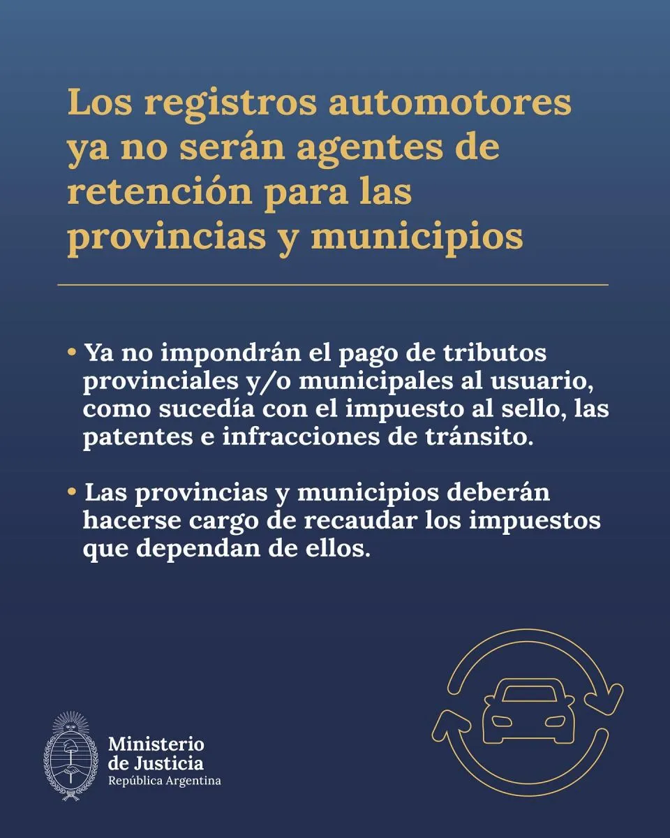 Los Registros de la Propiedad Automotor y Motovehículos dejarán de ser agentes de retención de impuestos provinciales. Además, ya no compartirán la información de la titularidad de los vehículos con la DGR.