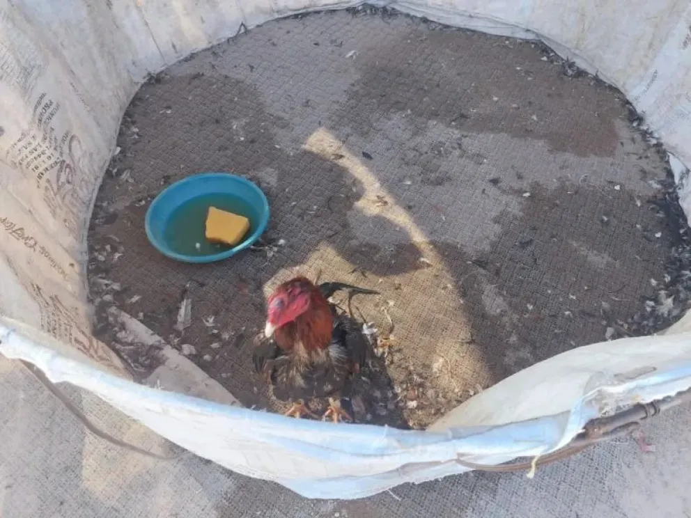 Durante el allanamiento, se confiscaron más de 20 gallos de riña, además de picos postizos, púas, y una variedad de productos para el cuidado de las aves, como medicación, antiinflamatorios, estimulantes, antibióticos y vitaminas. También se incautaron elementos de curación y cajas de transporte.