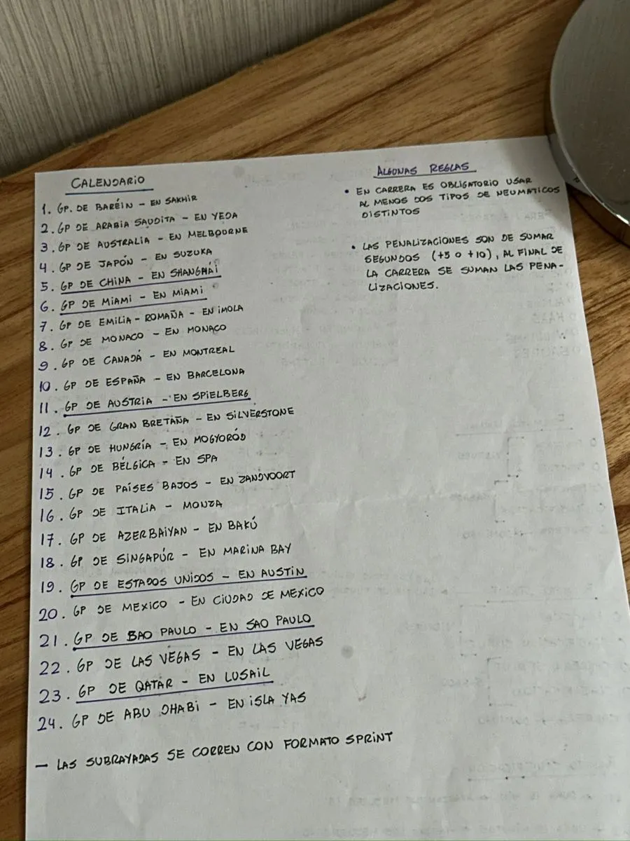 Esta guía no fue todo, sino que también le sumó las fechas de cada carrera y el lugar donde se llevarán a cabo, junto con algunas reglas más de la Fórmula 1. “Esto no es todo, hay una segunda parte. Como veo que no solo me ayudó a mí lo comparto jajaja”, agregó Flor, la novia de Tomás, en otro posteo.