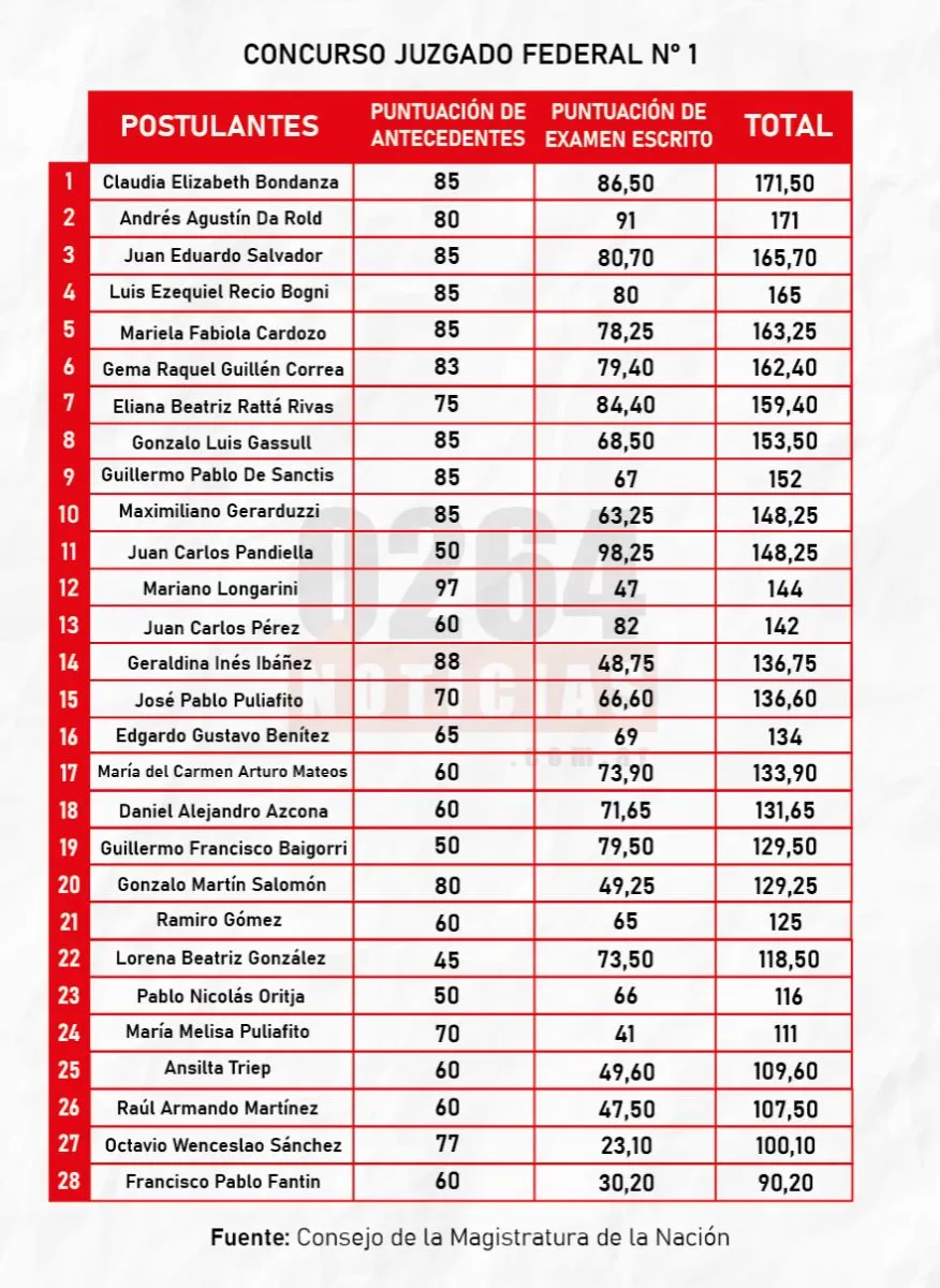 También te puede interesar: En la disputa por el Juzgado Federal N°1, la secretaria del Tribunal encabezó los puntajes