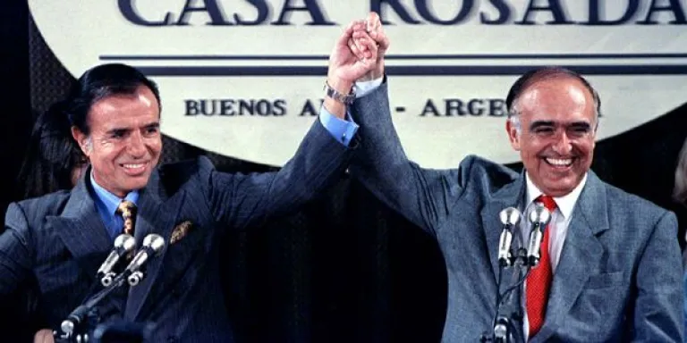 Cuando asumió Carlos Menem en 1989, la relación con su vicepresidente, Eduardo Duhalde, tuvo tintes completamente diferentes. El bonaerense en 1991 renunció a su cargo para asumir la gobernación de Buenos Aires y las tensiones se iniciaron cuando Menem manifestó sus intenciones de ser reelecto, lo que provocó una disputa que duró prácticamente en toda la década de 1990.