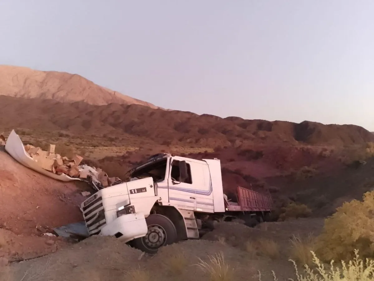Según el informe policial, se trata de camión Scania, cuyo conductor perdió el control del rodado, sin intervención de otro vehículo, terminó volcando.