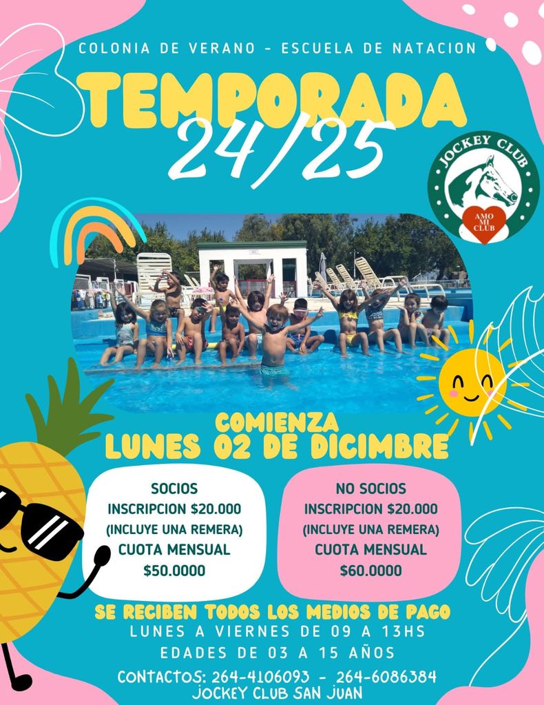 Jockey Club: La institución comienza la temporada el lunes 2 de diciembre y terminará en febrero. Estará destinada a menores de 3 a 15 años y tendrá las modalidades de colonia de verano y escuela de natación.