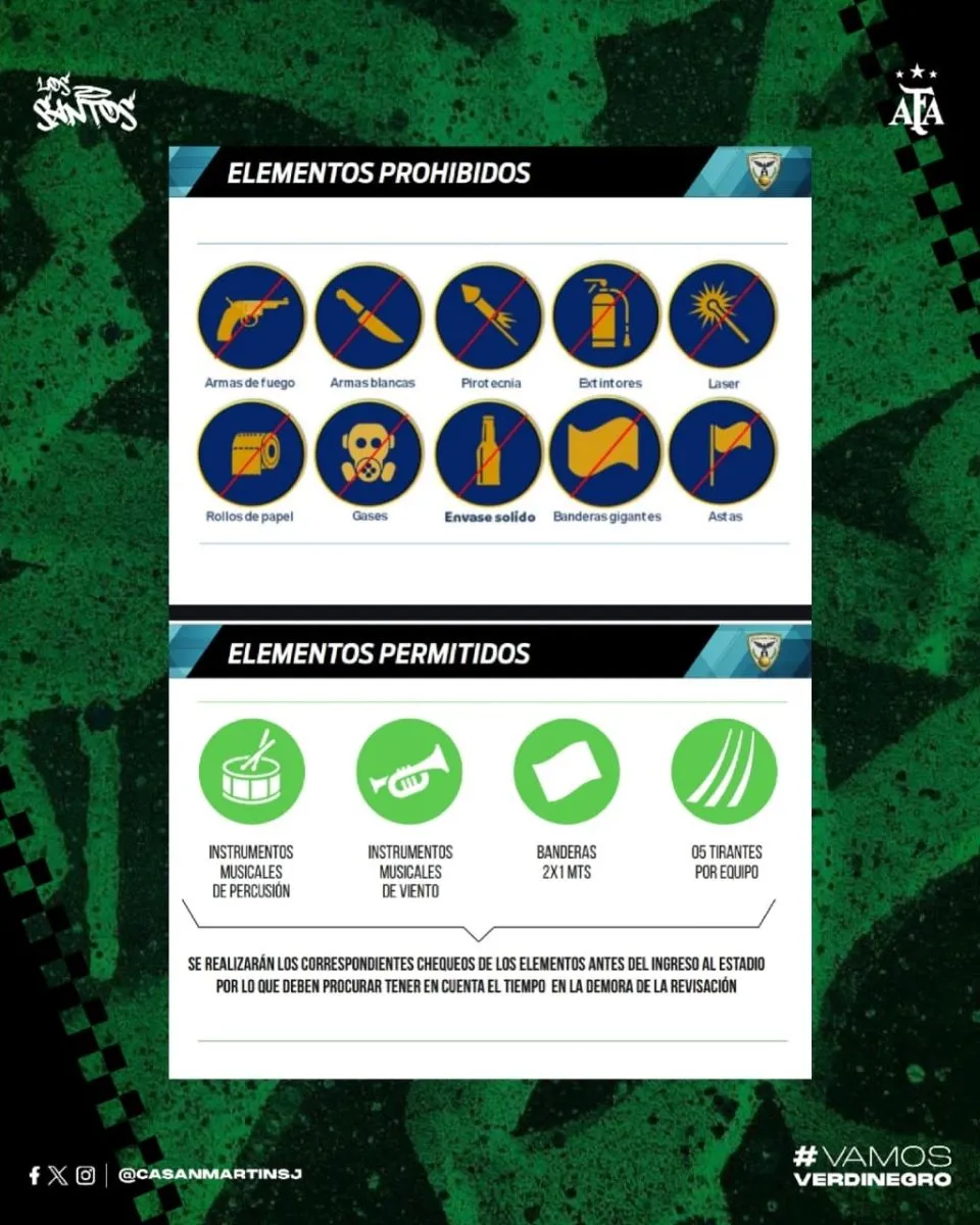 De cara a la esperada final entre San Martín y Gimnasia y Esgrima de Mendoza, las autoridades han definido una serie de elementos que estarán permitidos y prohibidos para ingresar al estadio, con el objetivo de garantizar la seguridad de los asistentes y asegurar que el evento se desarrolle en un ambiente tranquilo y familiar.
