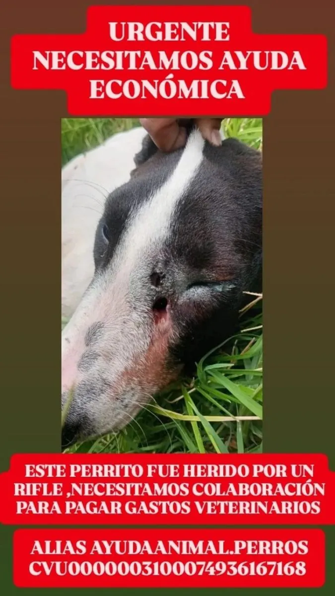 El perrito recibió dos impactos de balas comprimidas, uno en el hocico y uno cerca de sus ojos. Producto de este ataque, se encuentra en grave estado, según afirman desde el grupo que lo auxilió.