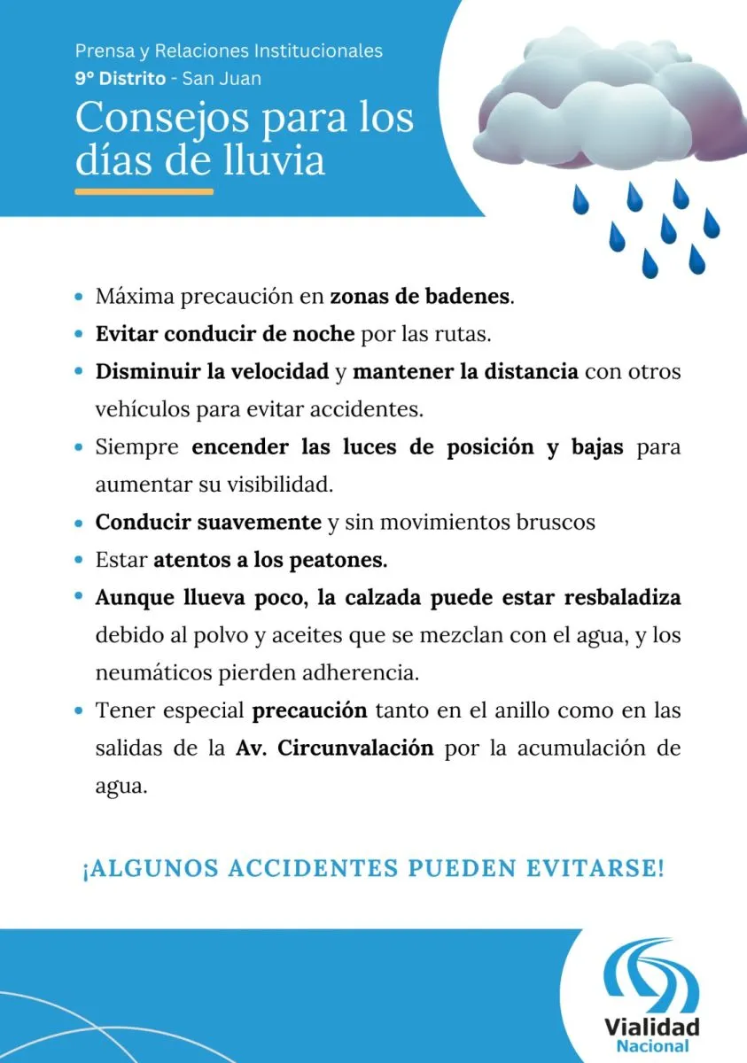 Vialidad Nacional informó que todas las rutas nacionales en San Juan están habilitadas y transitables