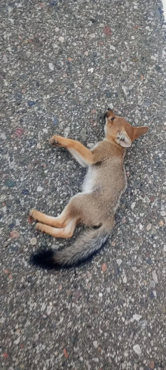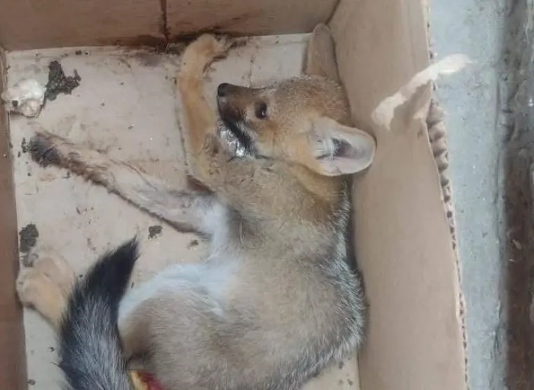 Una cría de  zorro que había sido atropellada y abandonada  al costado del camino fue rescatada por una pareja que regresó de Valle Fértil.