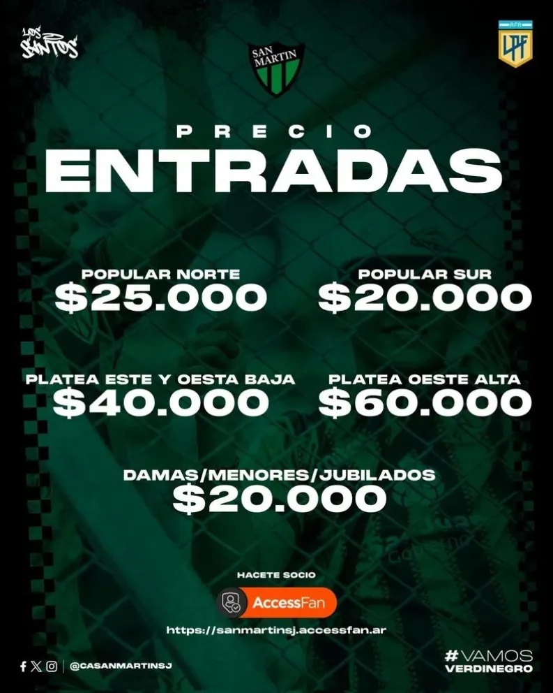 De cara a este emocionante partido, el club habilitó la venta de entradas online a través de la plataforma AccessFan. A continuación, los precios según los diferentes sectores del estadio: