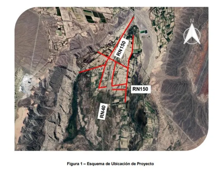 En este sentido, el proyecto contempla la instalación de un total de 5153 m de cañería de PEAD PN10 75 mm, 8322 m de cañería de PEAD PN10 110 mm, y 1884 m de cañería de PEAD PN10, 160 mm; realizando un empalme a la cañería de PVC  250 mm existente sobre Ruta Nacional 150.