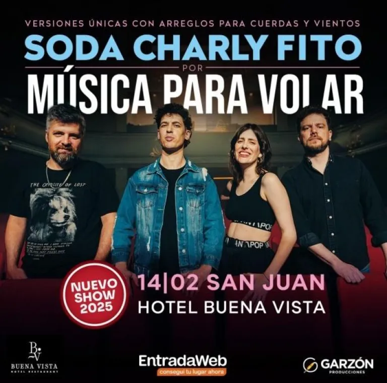 El 14 de febrero, el grupo Música para Volar regresará a San Juan con un espectáculo único en el Hotel Buena Vista, donde estrenarán un nuevo repertorio en el que interpretarán versiones de los grandes clásicos del rock nacional. La propuesta promete ser una fusión de música y naturaleza, con un show que se desarrollará en un entorno especial, rodeado de jardines y viñedos como telón de fondo.