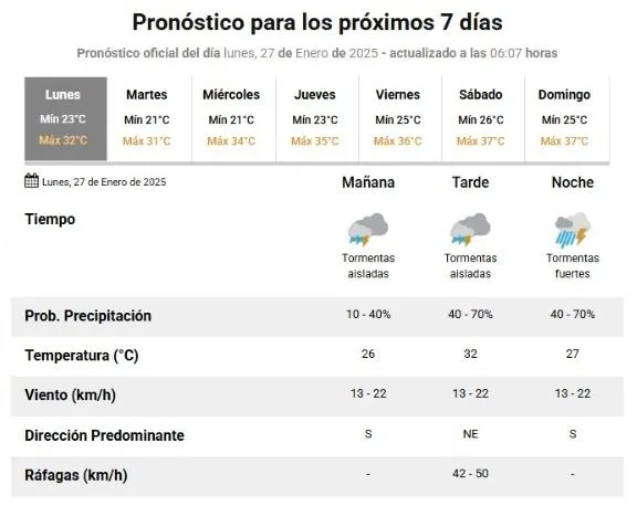 Para el martes se esperan precipitaciones durante todo el día, con máximas que no superarán los 31 grados.