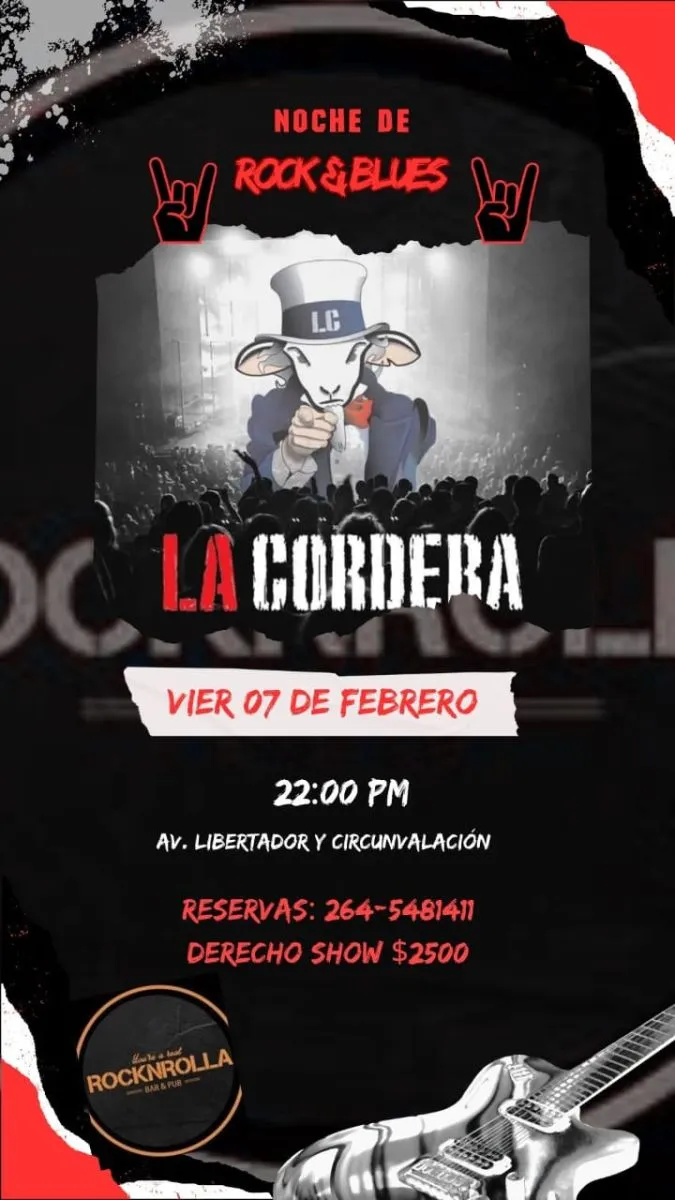 La banda sanjuanina, La Cordera, se presentará el próximo viernes 7 de febrero en el bar Rocknrolla, en lo que promete ser una noche llena de energía y buena música. Con un repertorio que abarca clásicos del rock y el blues, los músicos llevarán al público por un recorrido que incluye temas de la Renga, Pappo, JAF Mississippi y mucho más, en una velada imperdible para los amantes de los géneros.