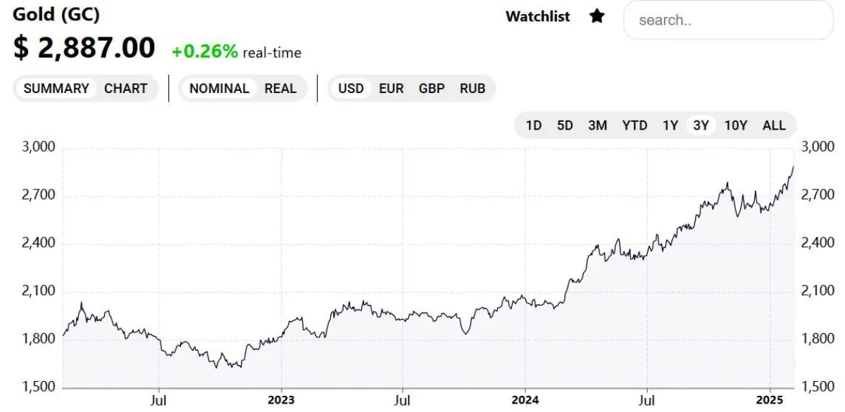 El metal precioso ha llegado esta semana a tocar su máximo valor histórico acercándose por primera vez a los 2.900 dólares la onza y algunos ya lo ven superando los 3.000 dólares en los próximos meses.
